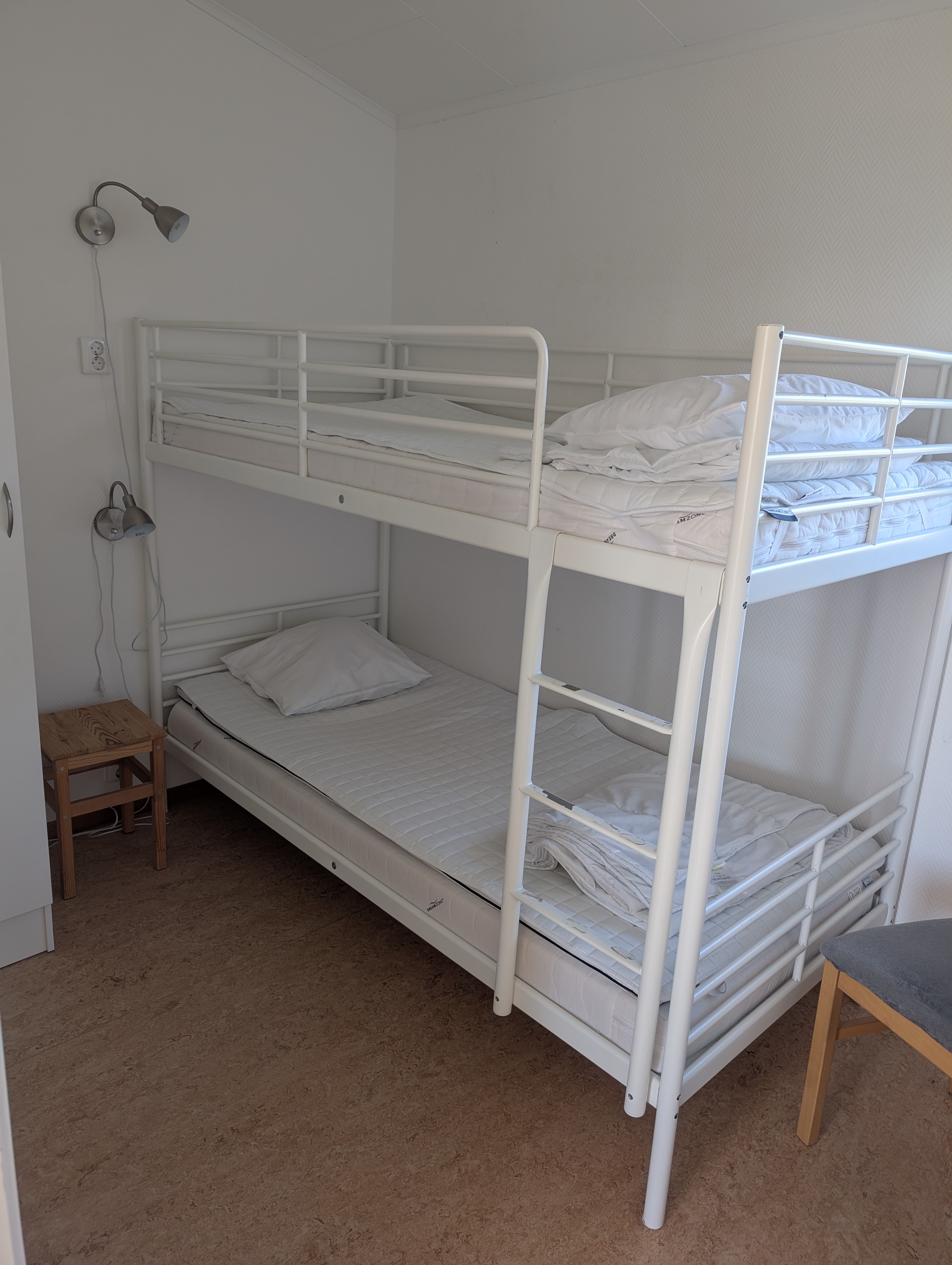 Samt två enkelsängar i friggeboden