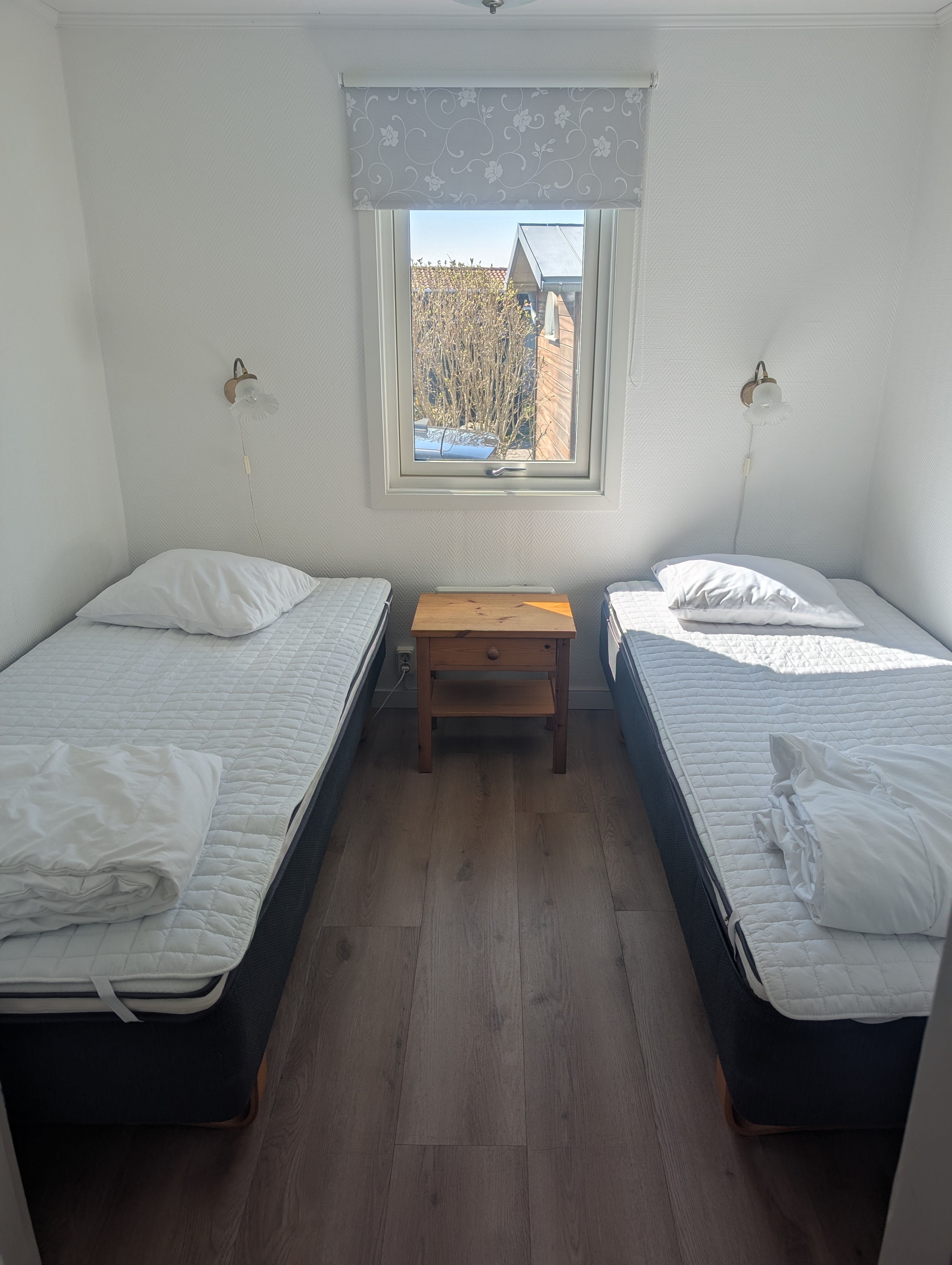 6st bäddar fördelade på ett sovrum med två enkelsängar