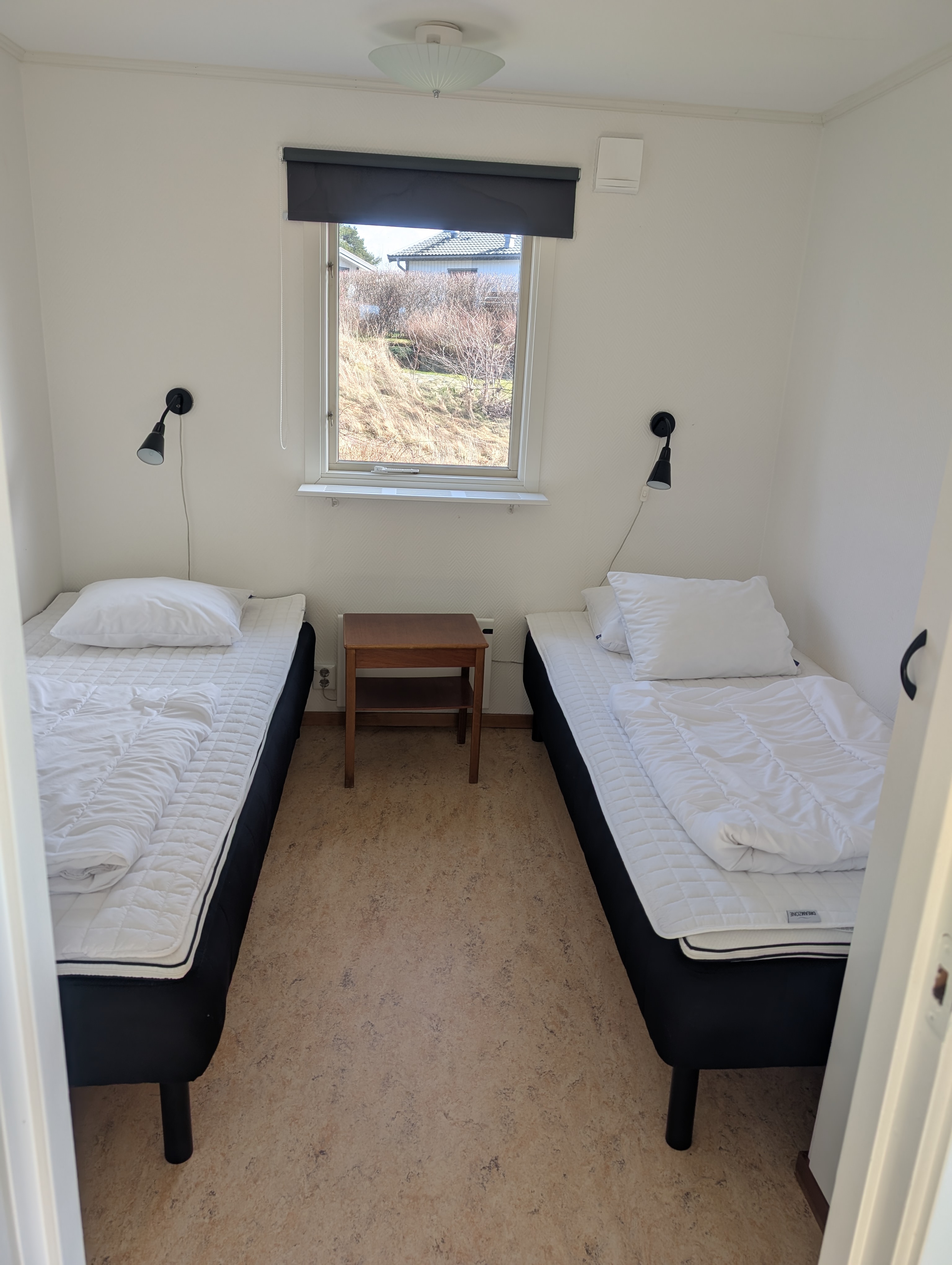 ett sovrum med två enkelsängar